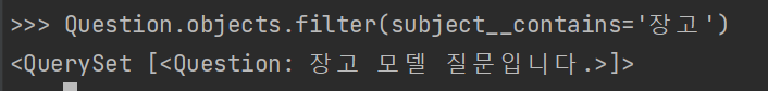 subject__contains='장고' => 'subject 속성에 '장고'라는 문자열이 포함되어 있는가?' 라는 뜻.