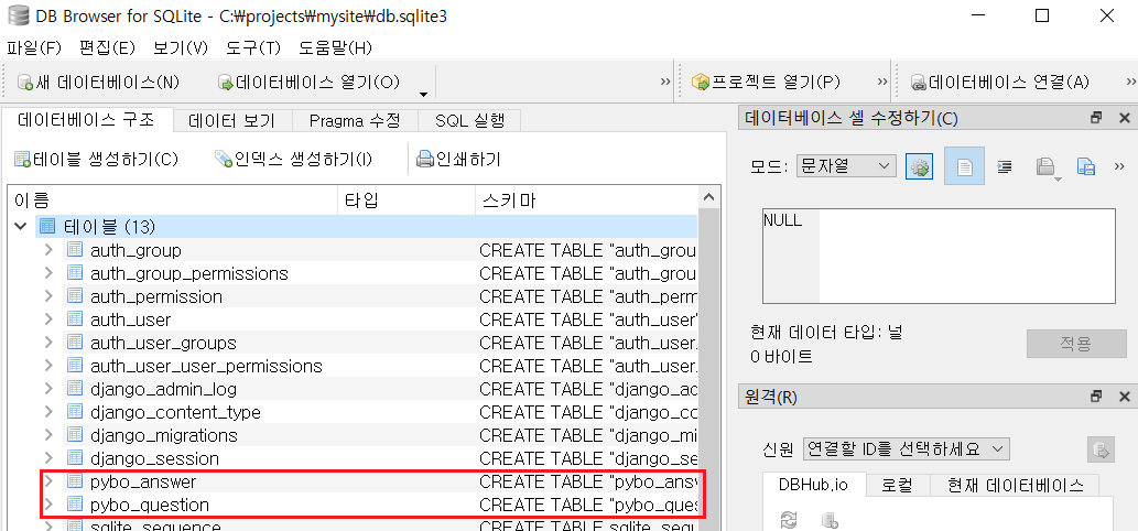 05단계 DB Browser for SQLite로 테이블 살펴보기