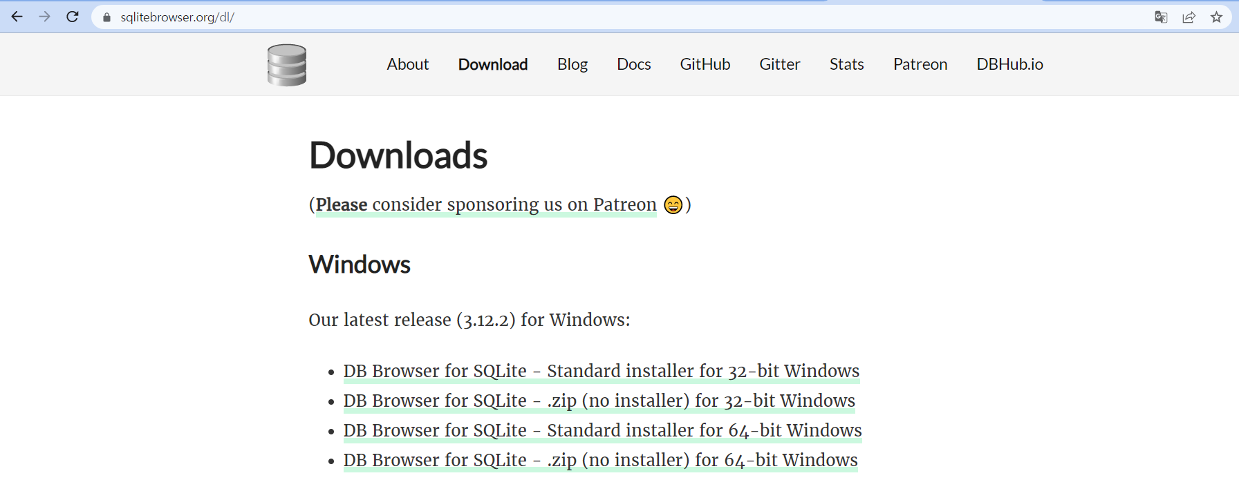 sqlitebrowser.org/dl에 접속해서 'DB Browser for SQLite'를 내려받자.