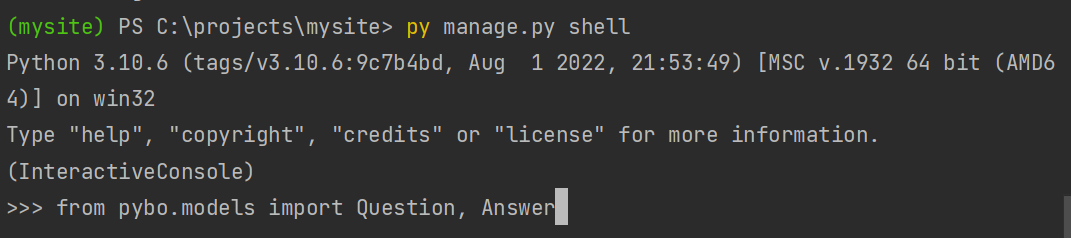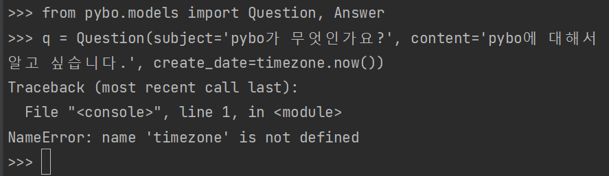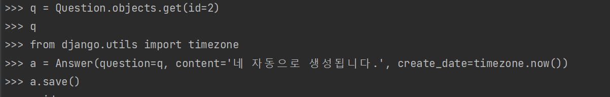 id가 2인 Question 모델 데이터를 얻은 다음, 이를 이용하여 Answer 모델 데이터를 만들어보자.
