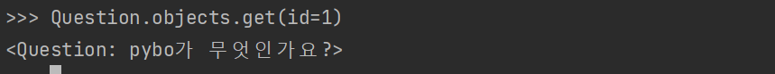 지금은 유일한 값인 id를 조건에 사용했으므로 Question 모델 데이터 하나만 나왔다.