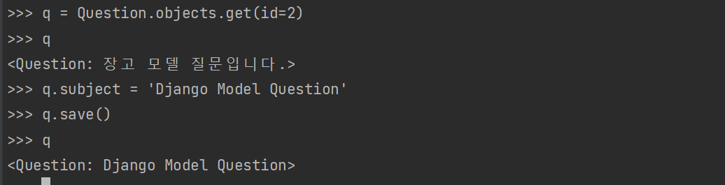 반드시 save 함수를 실행해야 변경된 Question 모델 데이터가 데이터베이스에 반영된다.